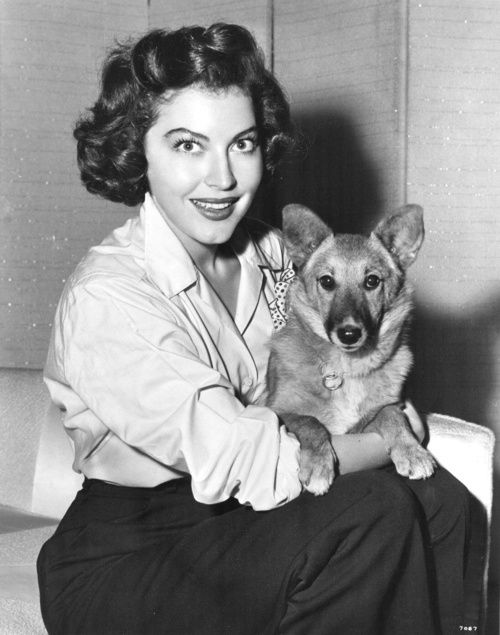 | Ava Gardner with her pet corgi, ca. 1950s |