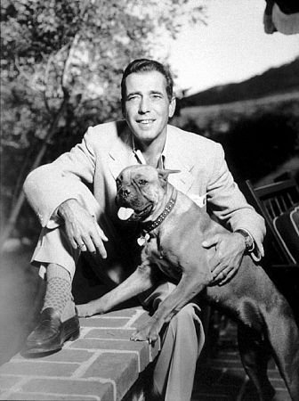 | Humphrey Bogart with his pet boxer, 1949 |
