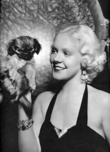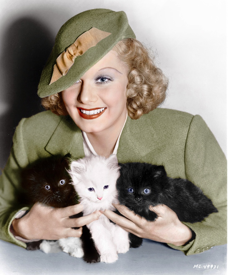 | Jean Harlow with three lovely kittens |
