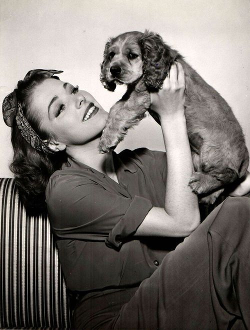| Eleanor Parker and her little dog, 1945 |