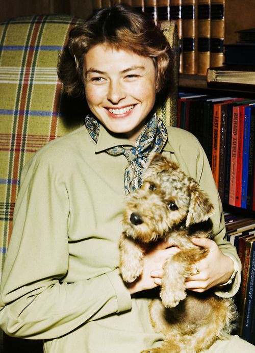 | Ingrid Bergman with her pet, 1944 |