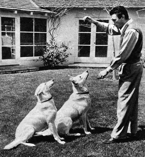 | Gregory Peck with his beloved dogs |
