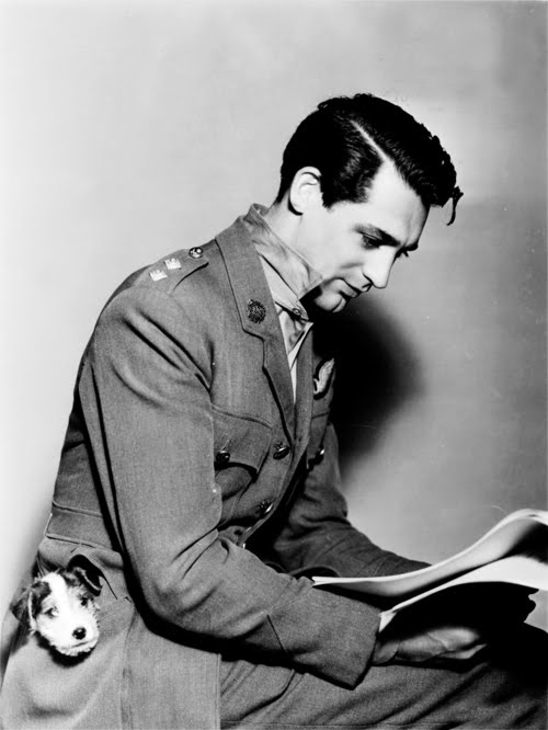 | Cary Grant with a little dog in his pocket |